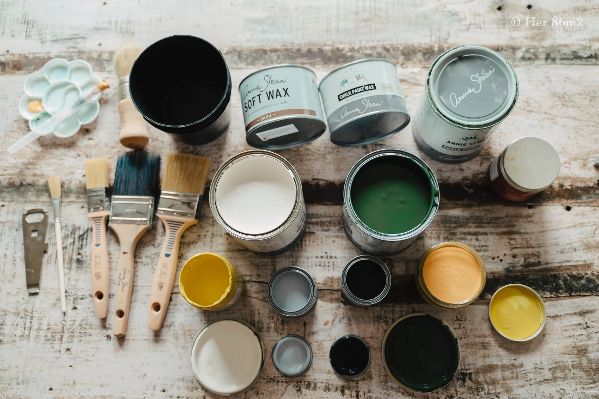Đồ của Ikea hầu hết là gỗ ép, để đỡ mất công mài và sơn lớp lót thì mình dùng Chalk Paint để sơn thẳng trực tiếp lên. Chalk paint cũng là loại sơn mình dùng để sơn tủ bếp. Hãng mình sử dụng vẫn là Annie Sloan.